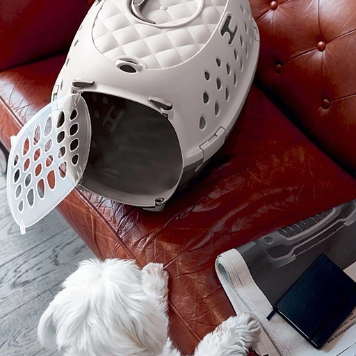 Travel Chic Práctico y elegante transportín con acabado matelassé para mascotas de talla pequeña. Llevarnos siempre nuestro perro y nuestro gato es agradable, seguro y elegante con el transportín Travel Chic, inimitable en su trama matelassé que lo vuelve único en su tipo. El interior antideslizante, el enganche para los cinturones de seguridad y la mayor ventilación gracias a las ranuras en forma de gotas, lo vuelven perfecto para viajar con tus mascotas. MEDIDA INT: cm 48x31x29h 18,9"x12,2"x11,4"h MEDIDA EXT: cm 50x34,5x32h 19,68"x13,6"x12,6"h