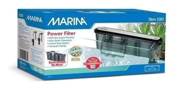 El diseño único del potente Filtro Marina Slim es compacto y delgado, añadiendo elegancia a su acuario y ocupando menos espacio. Sólo tiene que conectar y listo! Tanto la instalación como el mantenimiento son rápidos y fáciles. Incluye cartuchos de filtro con CERAMITEK, diseñado para optimizar y mantener la filtración biológica. Están equipados con 2, 3 o 4 cartuchos de filtro. Alternando el reemplazo del cartucho, el sistema Bio-Guard asegura en el cartucho la rápida siembra de bacterias beneficiosas, asegurando la filtración biológica adecuada necesaria en un acuario limpio y saludable. Puede sumergir el motor para que funcione así de una manera más silenciosa. No necesita cebado y su altura es ajustable para poder adaptarse a distintos niveles de agua. La esponja del filtro evita que los peces pequeños o las crías puedan resultar dañados.