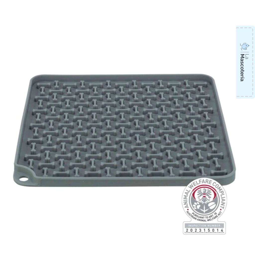 El Mantel para lamer de 20 x 20 cm es ideal para calmar a tu mascota y proporcionar períodos de tranquilidad. Su diseño permite una baja ingesta de snacks durante largos periodos de actividad, lo que promueve un comportamiento más relajado.