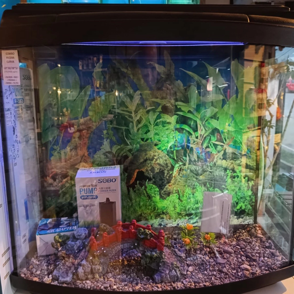 Todo lo que necesitás: viene con sustrato, plantas plásticas decorativas, lámina de paisaje, acondicionador de agua, bacterias biológicas y alimentos para tus peces.