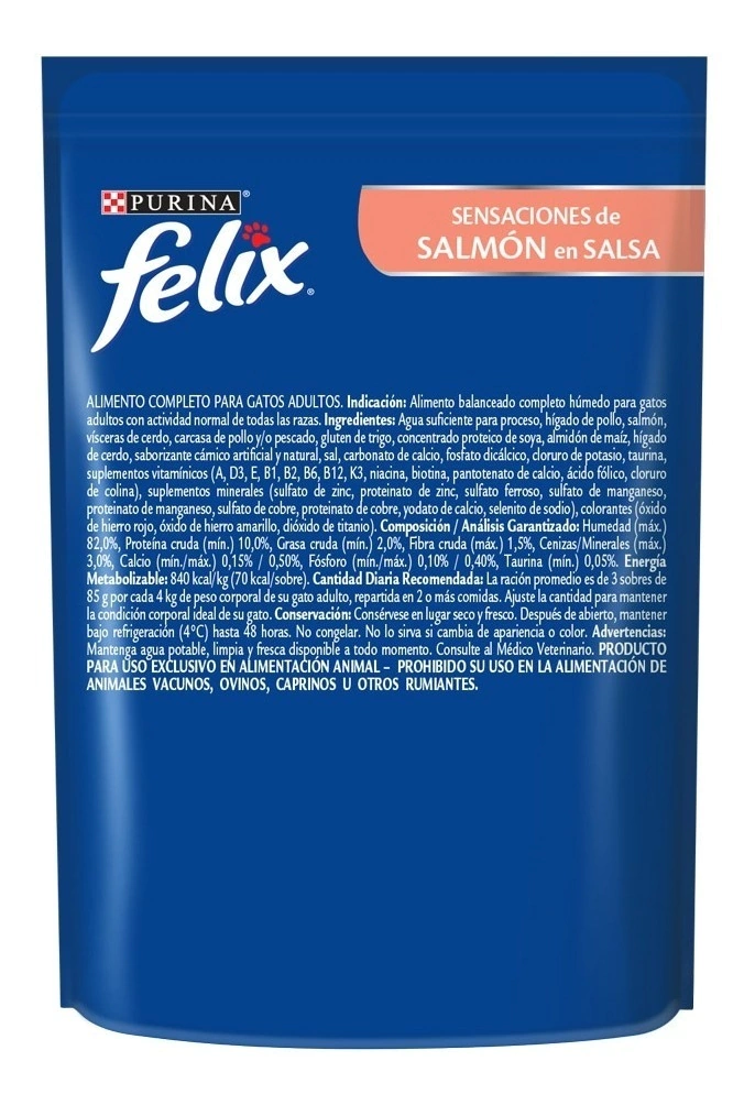 Salmón en Salsa Sensaciones Delicioso alimento húmedo completo y balanceado para gatos en desarrollo, compuesto por trocitos de salmón en salsa, para deleitar hasta al paladar gatuno más exigente.
